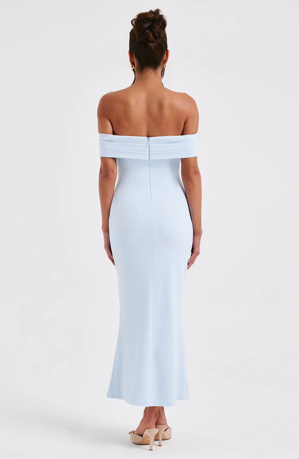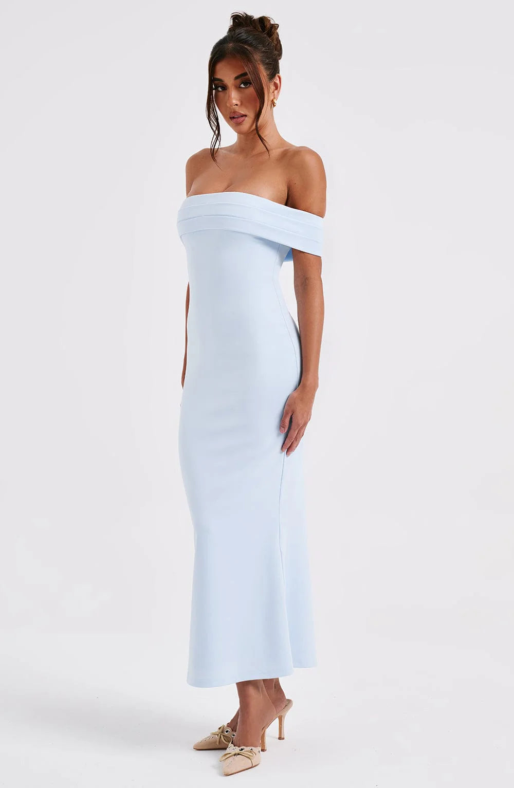 The Bex midi dress is just waiting for a special occasion. Cut from luxury stretch crepe that hugs your body in all the right places, this flattering design features a pleated bardot neckline and fit and flare skirt.
