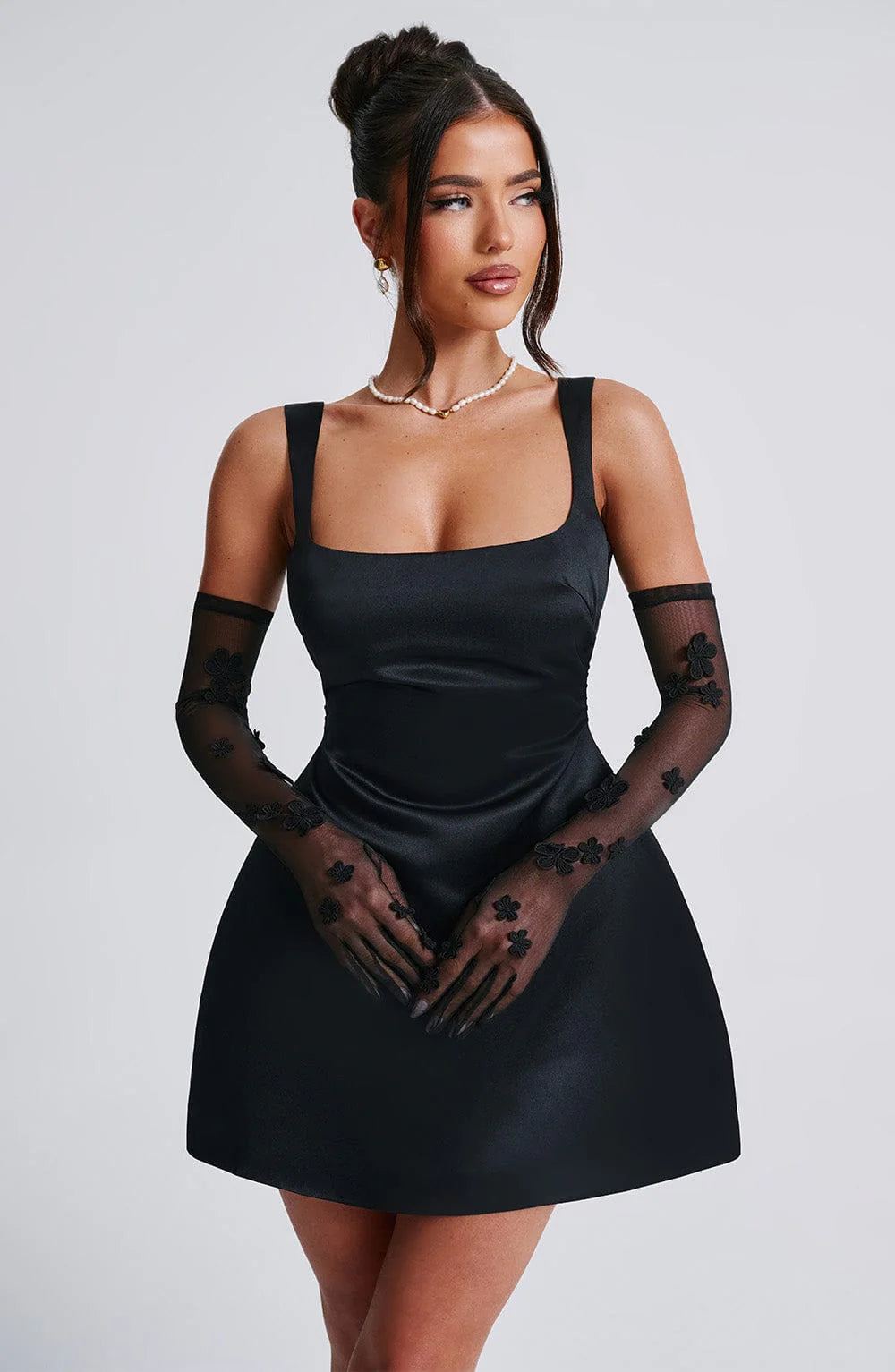 Introducing the finishing touch to the Dalary mini or maxi. Made in our delicate sheer mesh with stretch, these unlined gloves are scattered with pretty 3D floral applique all over. They finish at the elbow for a flattering fit.