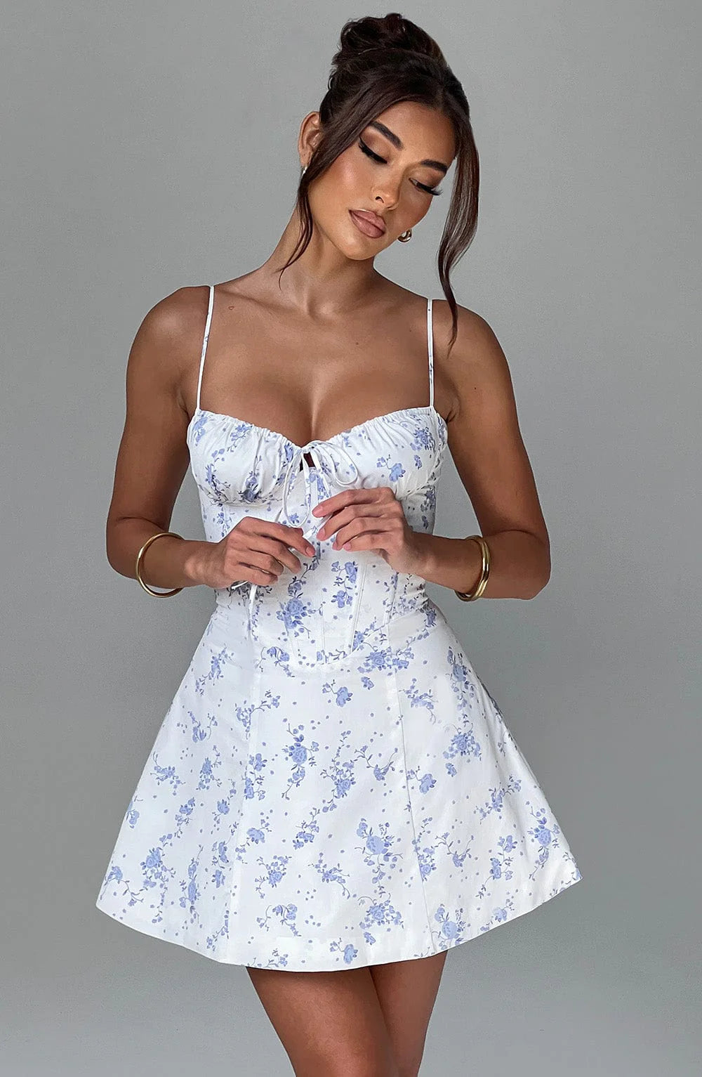 Another pretty mini to add to your collection, the Lacey dress is made in our lightweight, luxe cotton blend fabric. With gathered, underwired cups and tie detail, the waist cinching boned bodice is complemented by a flirty, voluminous skirt. A lace up detail to the back completes the look.