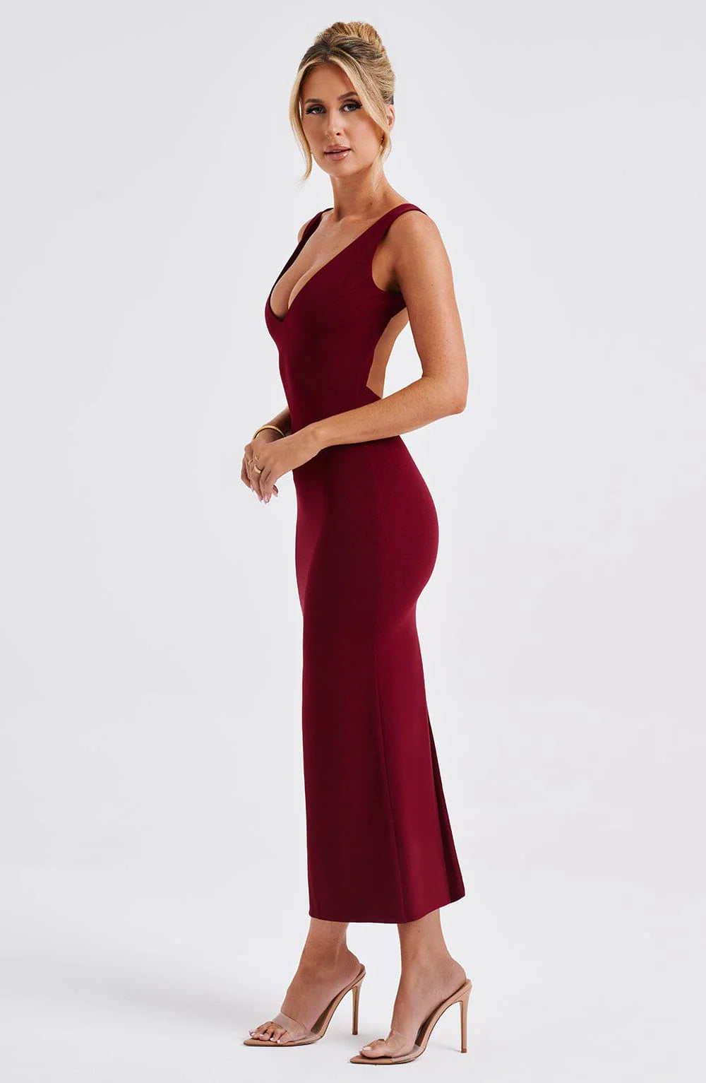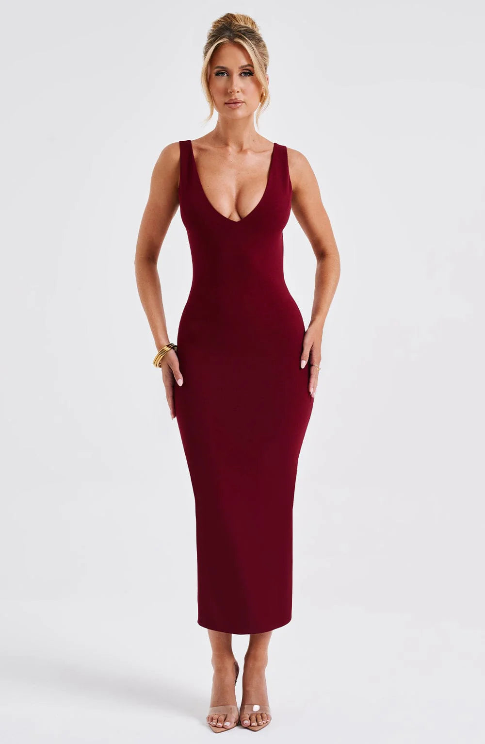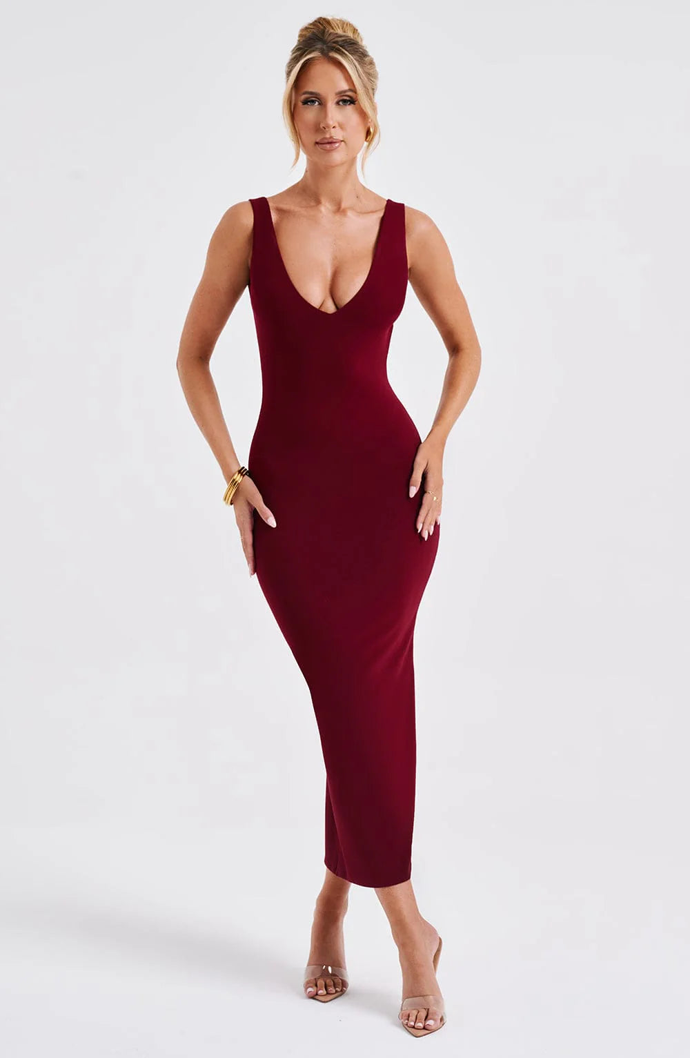 Meet the midi of the moment, Lucinda. Crafted in our premium stretch crepe fabric with a second skin fit, this midi dress has a plunge neckline, low scoop back and split in the centre back skirt. Style with tonal heels and a mini bag.