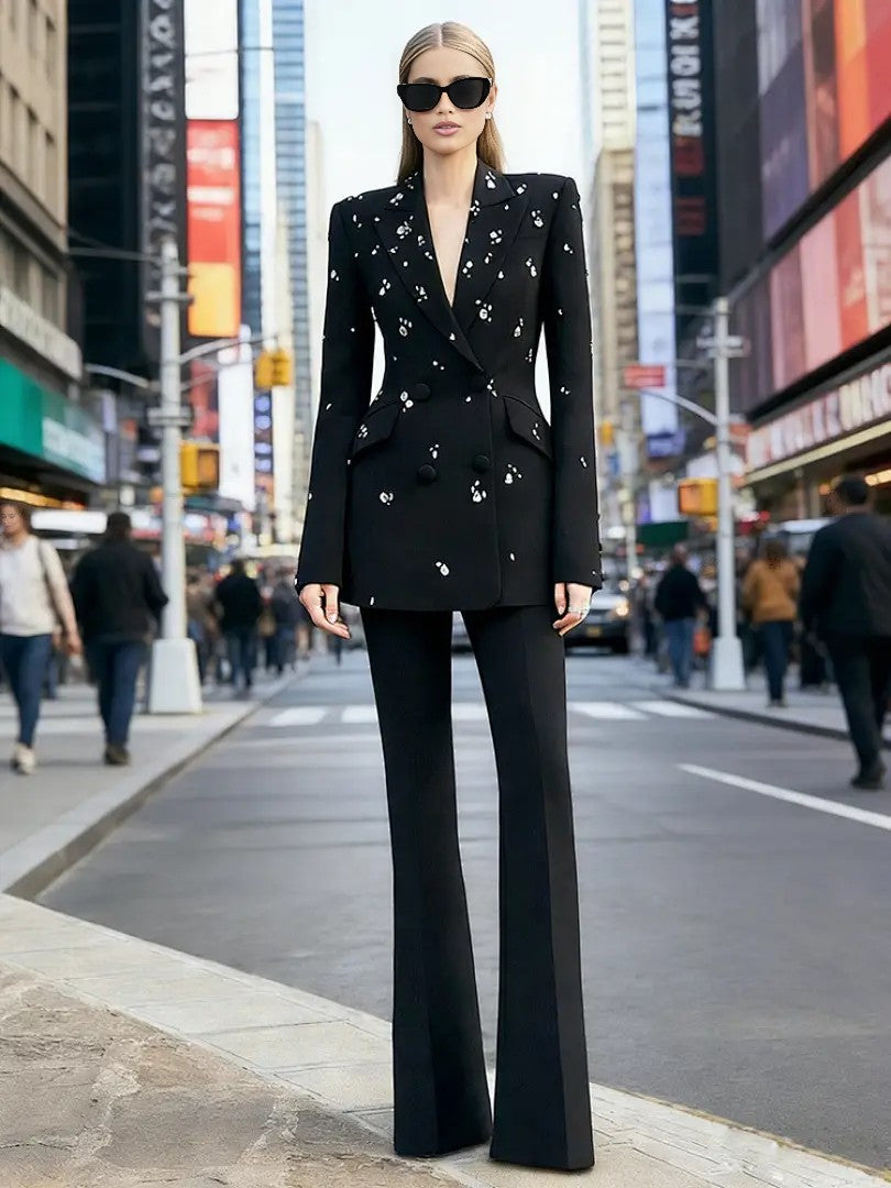 This luxurious black satin mermaid evening gown features a glamorous sweetheart neckline adorned with intricate beading, creating a dazzling focal point. The open back adds a touch of allure, while the floor-length hem flows gracefully to the ground, complemented by a subtle train for added drama. Crafted from high-quality matte black satin, the fabric drapes elegantly to accentuate the mermaid silhouette, hugging curves through the bodice and flaring at the knees for a showstopping effect. Ideal for black-tie galas, wedding receptions, or formal galas, this gown pairs beautifully with strappy heels, delicate earrings, and a minimalist clutch. Designed to flatter hourglass and pear-shaped figures, it exudes timeless elegance and modern sophistication, ensuring you stand out at any formal occasion.