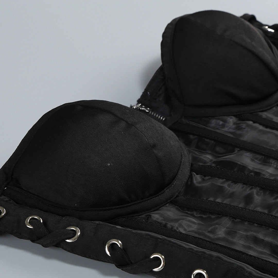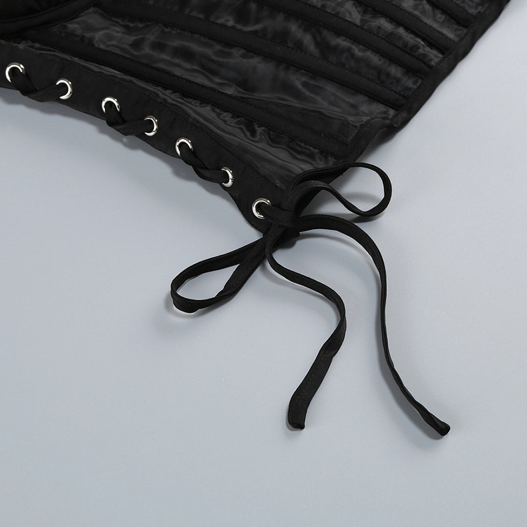 Channel dark romance in our Black Corset Dress: strapless mesh corset bodice, layered ruffle skirt, and asymmetric hem. Perfect for gothic events, date nights & edgy parties. Shop at Ladies-Street.com.